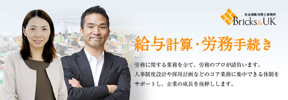 当社グループ「Bricks&UK」では、給与計算を傘下の「社会保険労務士事務所Bricks&UK」が担い、給与支払代行などの経理代行は当社「Bricks&UKアウトソーシング」が請け負います。